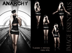 IE – Anarchy Anarchy – A set of 5 poses plus mirrors (10 poses in total) – $300L Available instore and via marketplace Leave a comment Cancel reply Δ