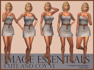 IE – Cute and Coy V1 Cute and Coy V1- A set of 5 poses plus mirrors (10 poses in total) – $300L Available instore and via marketplace Leave a comment Cancel reply Δ