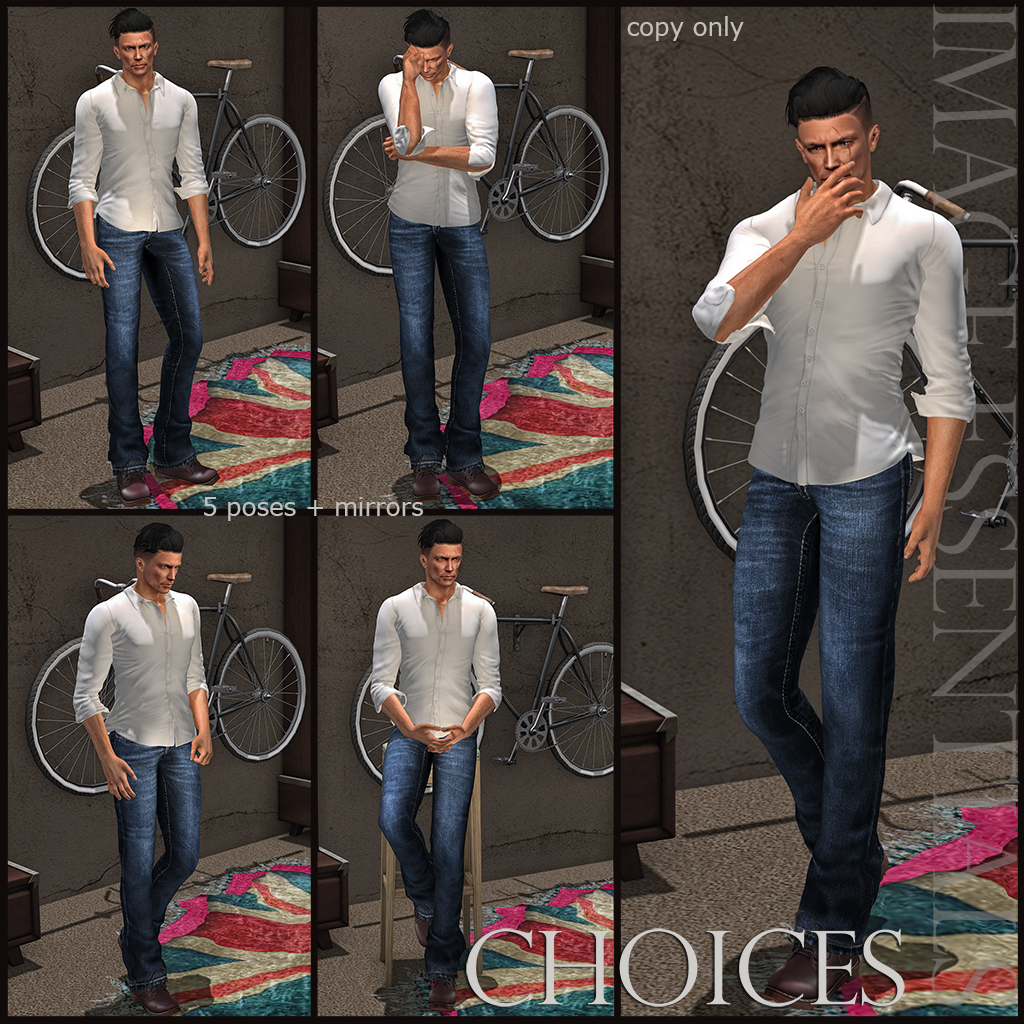IE – Choices Choices – A set of 5 poses plus mirrors (10 poses in total) – $300L Available instore and via marketplace Leave a comment Cancel reply Δ