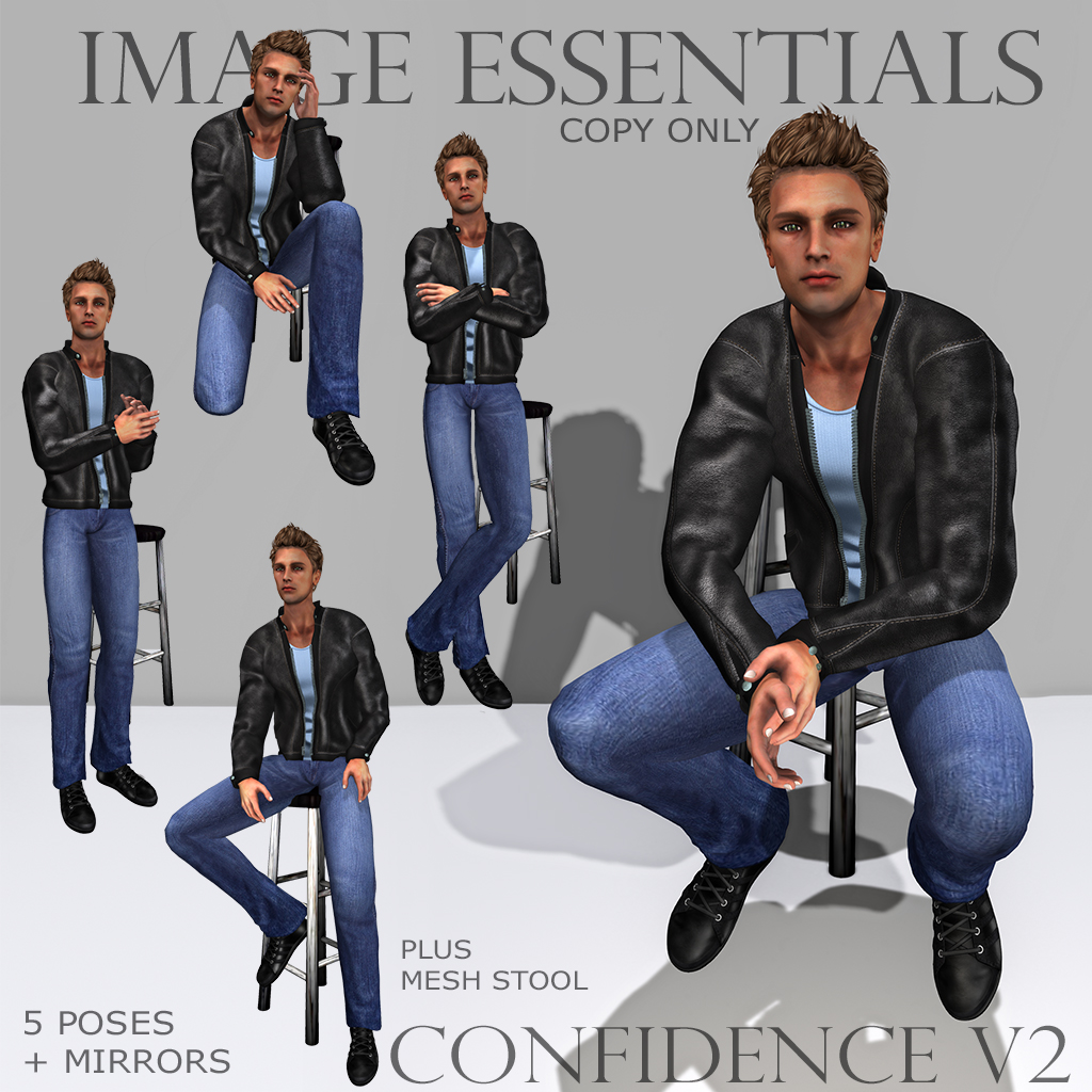 Confidence V2 – A set of 5 poses plus mirrors (10 poses in total) + mesh stool – $300L